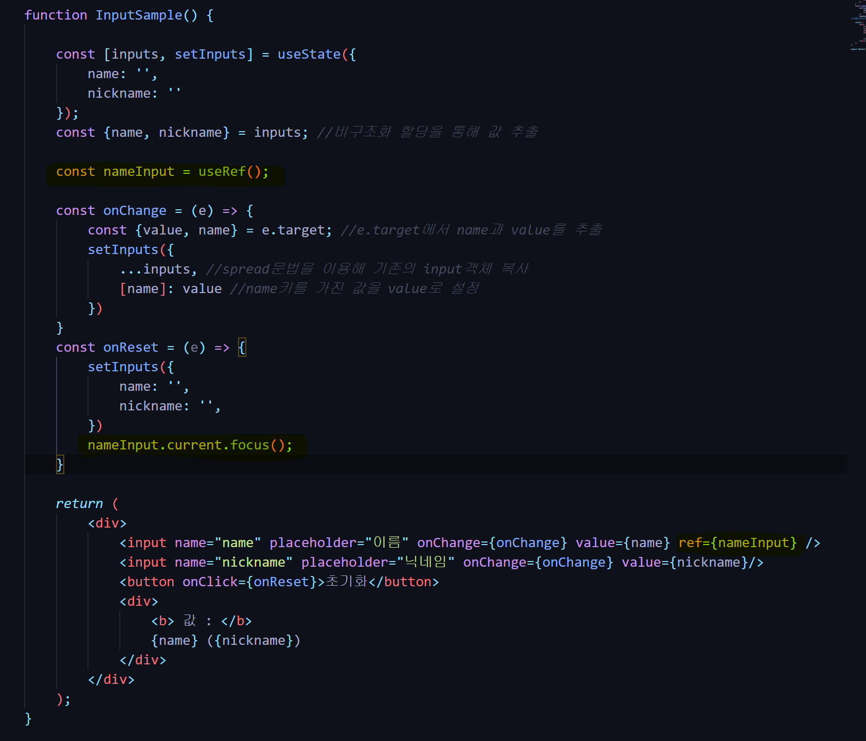 (코드 내용은 useState와 이어짐.)