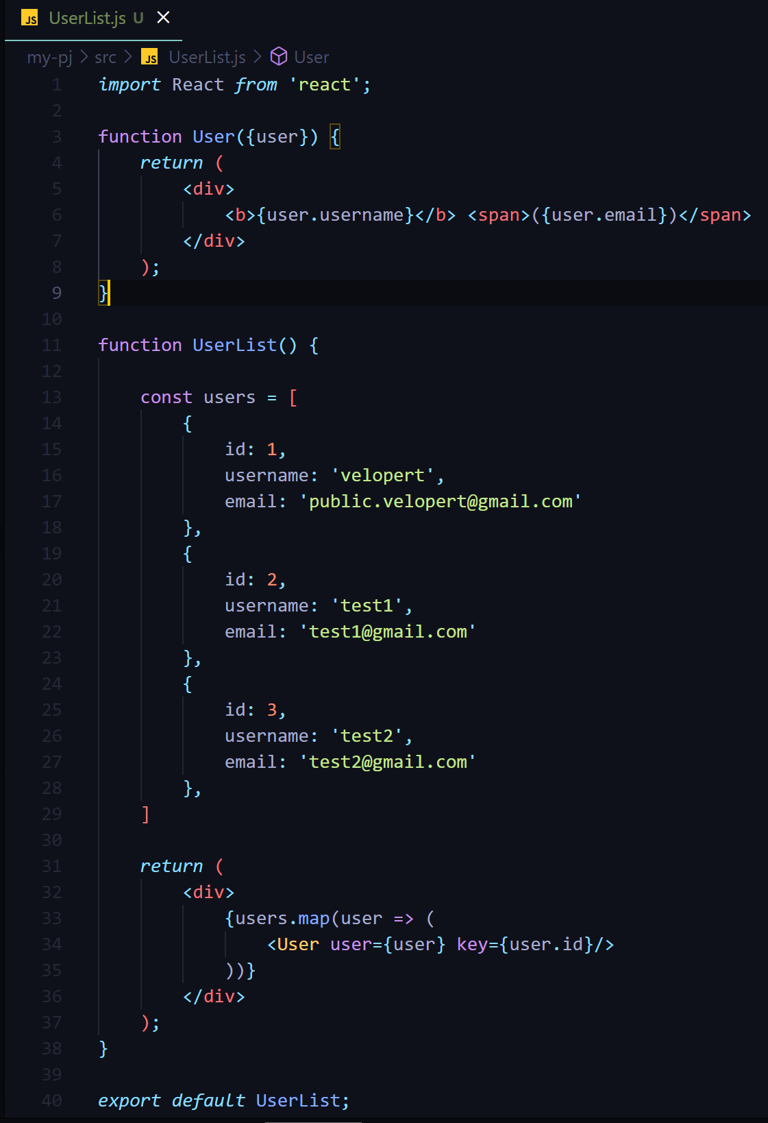자바스크립트 배열의 내장함수 map() 을 사용하여 배열 렌더링.
