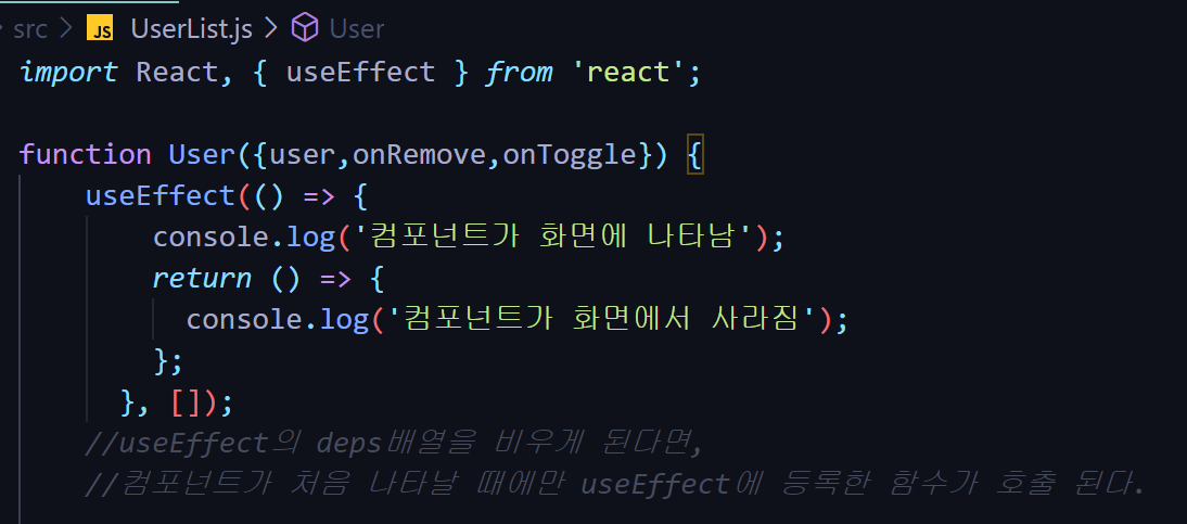 useEffect에서는 함수를 반환 할 수 있는데 이를 cleanup함수라고함