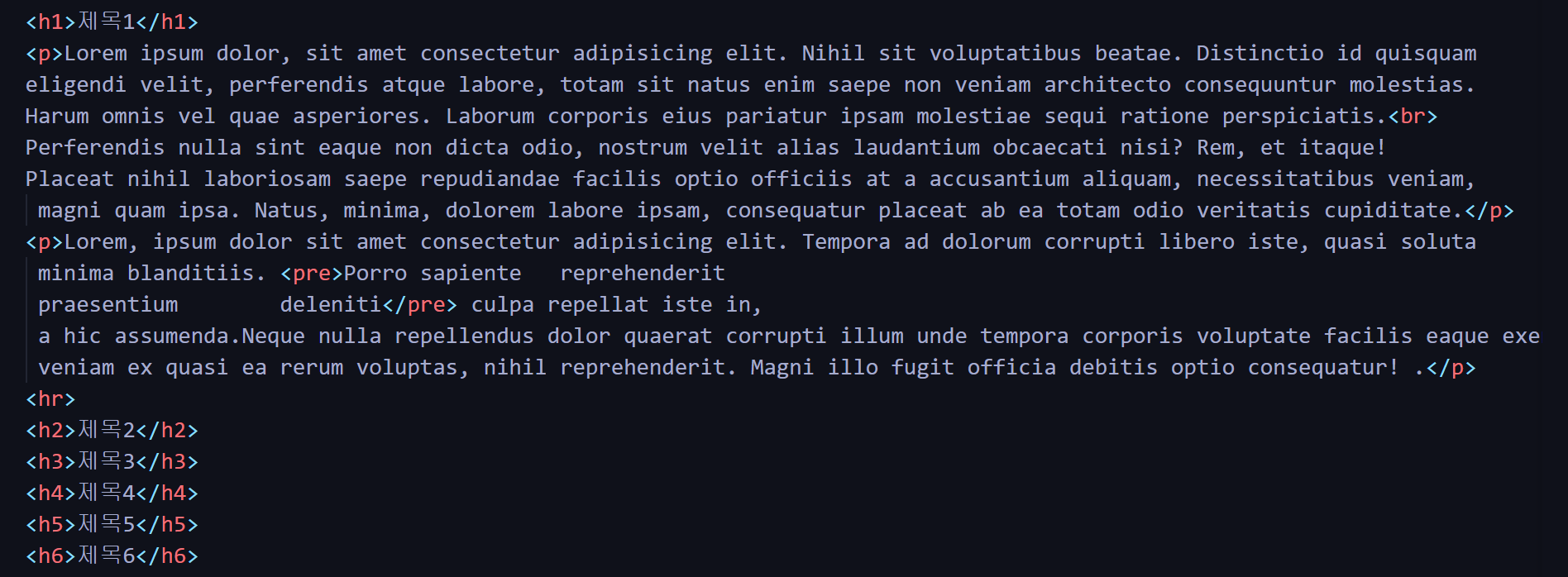 <h1><h2><h3><h4><h5><h6><p><br><hr><pre>