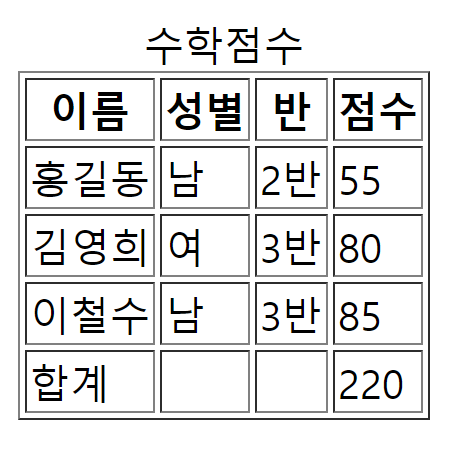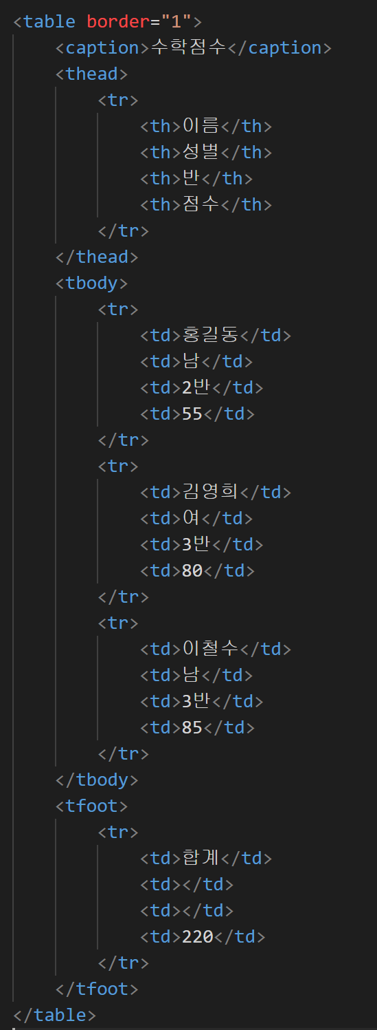 *border을 지정해야 표의 테두리가 보이므로 임의로 지정. 이에 관련해서는 나중에 css에서 공부.