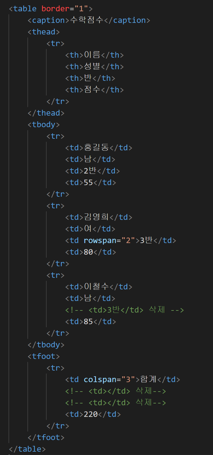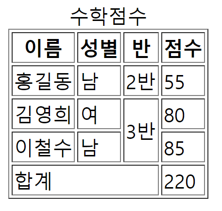 세로 병합 <td rowspan="병합 할 개수"</td>