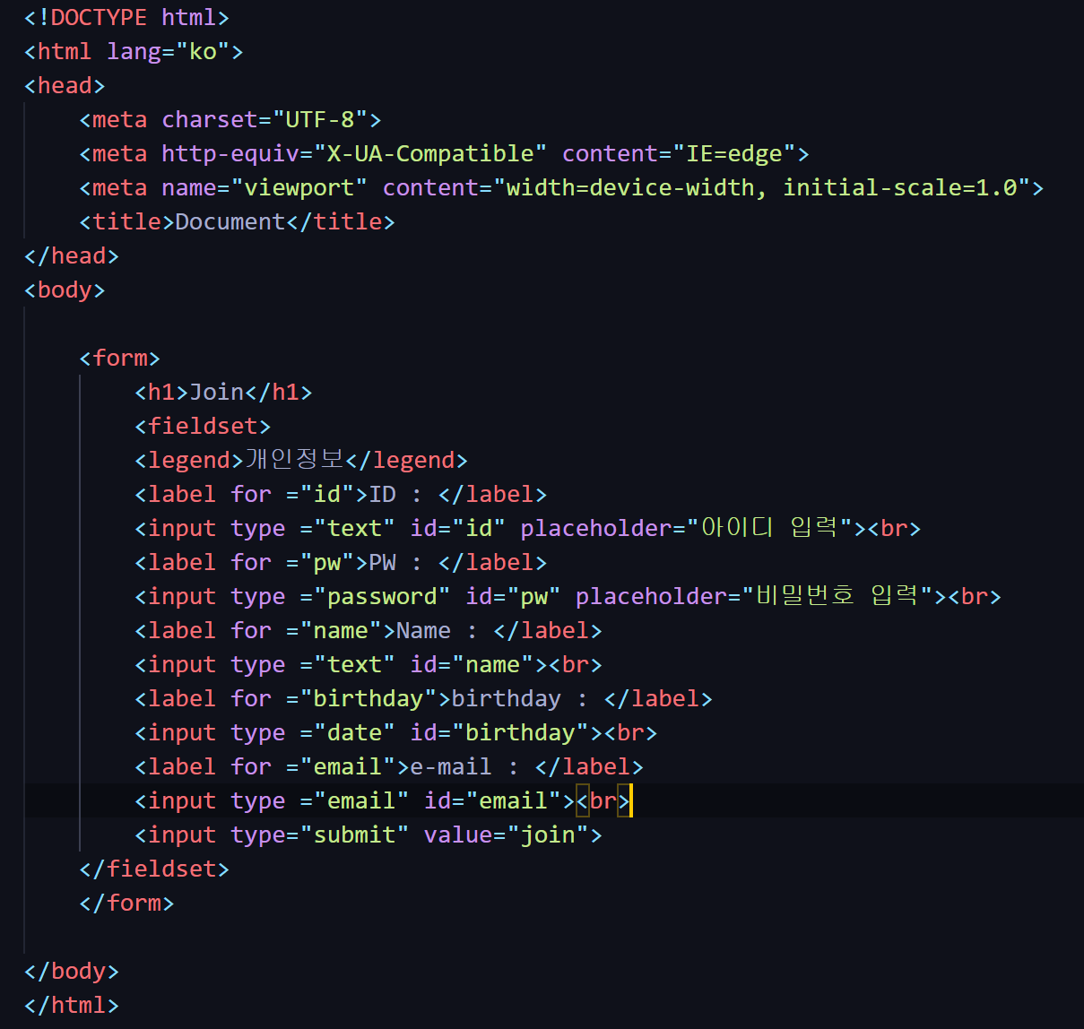 <legend> 그룹화한 form element의 이름을 지정하는 태그.